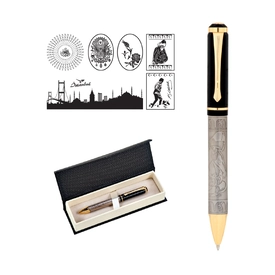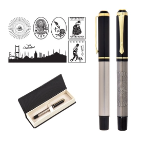 Kabartma Figürlü Metal Roller Kalem Seti